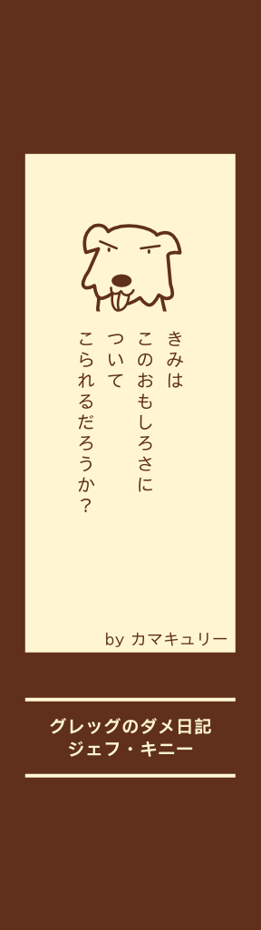 グレッグの夏休みの過 ごし方は、部屋のカー テンを閉め、明かりを つけないでテレビの前 でテレビゲームをする ことだ。だが、残念な ことにママが考える理 想の夏休みは、外で元 気に遊ぶこと。そんな ママにグレッグは「マ マくらいの年になって もしわくちゃにならな いように、ここから先 は自分を見てね」と言 う。