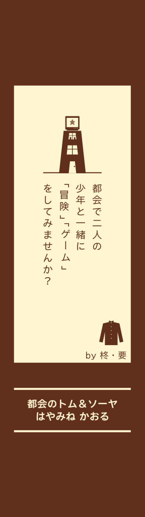 学校が同じ二人の少年 内人と創也。おかしな 金持ちの創也と、普通 の家の少年の内人は究 極のゲームを作るため、 ゲームにまつわる冒険 に挑む。内人のサバイ バル術と創也の頭脳は、 いろいろな知恵と知識 を絞りだし、見事冒険 を成功させる。が、最 後に強敵に出会うこと になる。