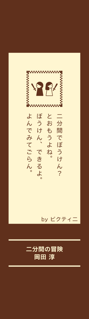 かおりとさとるのぼう けん!! 1回目はなぞなぞしょ うぶ!!2回目はたた かい!ふたりはりゅう にかてるのか!!そし てほんとうに二分でぼ うけんができるのか? ドキドキワクワクなお もしろいお話です。ぜ ひよんでみてほしいお はなしです。