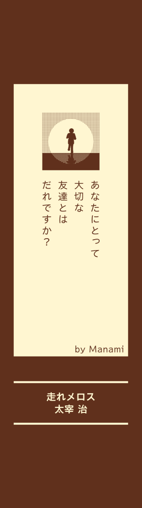 村の牧人、メロスは人 を苦しませようとする 王を止めるために、王 城に向かった。 メロスはただ一人の友 達のために、ひたすら 必死で走って、走って…