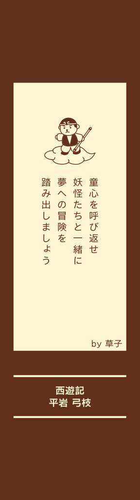 唐の玄奘三蔵法師は、 仏典を持ち帰るために、 天竺(今のインド)へ 旅を踏み出した。 途中に次々に三人の妖 怪弟子をとり、師徒四 人はいろいろな困難を 克服して、最後にやっ と願いをかなえた。 『西遊記』は、詼諧な 文字に人生哲理は包含 されて。 あなたも読んで笑った 後、きっと、何かの真 理を会得できるでしょ うね。