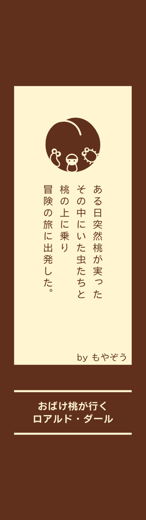 ジェイムズくんは両親 をなくし、二人の叔母 に引きとられた。ジェ イムズくんの毎日はつ らくて悲しいことばか りでした。 ある日丸太割りをして いると老人が現れ何か もらいました。 そしてなぜか庭の桃の 木にりっぱな桃が実り 中には七匹の虫が。 その七匹とくり広げら れる冒険をして、そし て最後は…