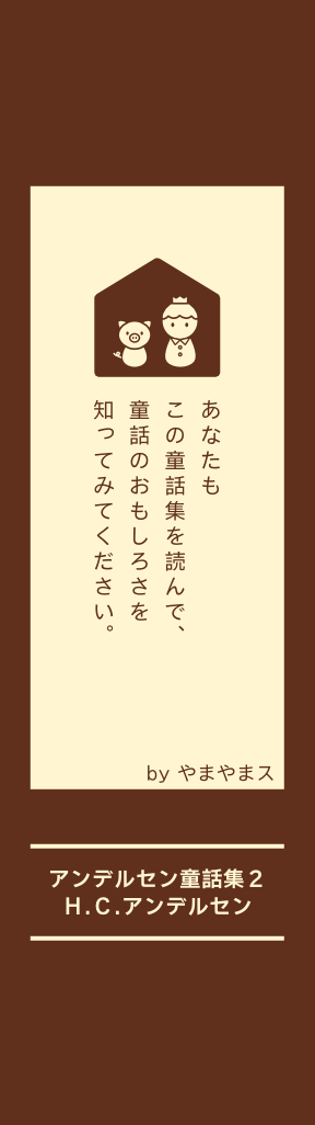 この本は「マッチ売り」 の少女」「人魚姫」な どの有名なものを12 話集めた、童話集です。 その中でも、とくにお すすめは、ブタ飼い王 子です。 まずしい王子が好きな 人にバラを送りました が、その人には気にいっ てもらえず、それでも あきらめない王子は、 その人の王宮ではたら くことになり、それが なんとブタの世話をす ることに!