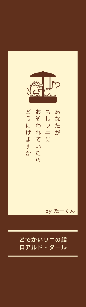 あるところにどでかい わにがやってきた!お なかがすいてたワニの ねらいはなんと人間の 子ども。 木にかくれてみたり、 シーソーになりすまし たり、メリーゴーラン ドのどうぶつにまぎれ てみたり、どうにか子 どもをたべようとする がうまくいかない。 なぜでしょうか。