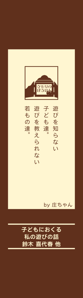 遊びを知らない 子ども達。 遊びを教えられない 若もの達。 庄ちゃんさんより