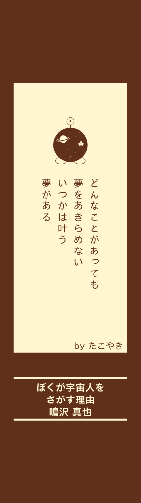 筆者、鳴沢真也さんは、 学生のころから引きこ もり生活をつづけてい た。彼には小さい時か らあきらめない夢があ る。それは、「宇宙人 に会いたい」という夢 だ。鳴沢さんは、引き こもりながらも、努力 を重ねて夢の実現にむ けて活動を続けている。