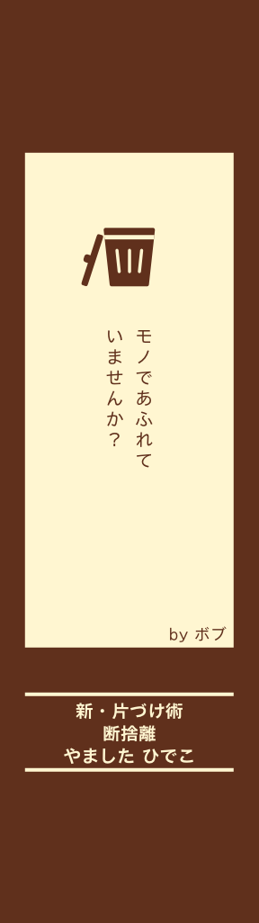 断捨離はただの片づけ 術ではなく、モノへの 執着を捨てる究極の方 法。 もったいない、という モノを中心とした軸か ら、それは自分に相応 しいモノか、と考え方 の軸を自分にシフト。 主役はモノではなく自 分!自分に必要かを取 捨選択する。 モノを手放すことで空 間や時間にゆとりがで き、心の余裕にもつな がる一冊です。
