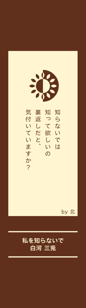 知らないでは 知って欲しいの 裏返しだと、 気付いていますか?