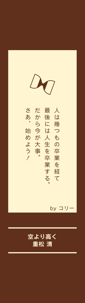人は幾つもの卒業を経て 最後には人生を卒業する。 だから今が大事。 さあ、始めよう! コリーさんより