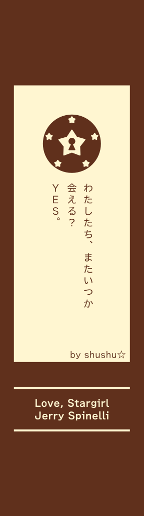 stargirl の続きのお話 です。stargirl ではス ターガールとレオの両 方の立場で書かれてい ましたが、今回はスタ ーガールの視点で全て 書かれています。読ん でみると、はやくつづ きが読みたくなります! オススメです。ぜひ読 んでみてください♪