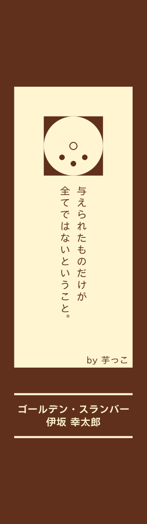 首相暗殺の濡れ衣を着 せられた男の逃亡劇を 描いた作品。 多くの伏線がはられて おり、回収していく度 にパズルのピースが揃っ ていくようで読みごた えがある。 "当たり前"が通用しな い面白さ。