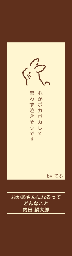 うさぎのミミちゃんと ターくんが考える「お かあさんになるってど んなこと?」ふわふわ なイラストとシンプル だけど優しい答えに、 思わず涙が出そうにな ります。