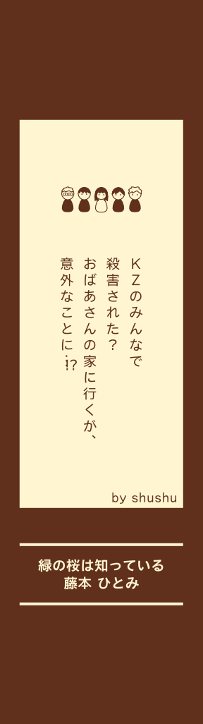 おばあさんが家でたお れていた!?おばあさん の家の事情について調 べるKZ。その次にお ばあさんの家に行った ときには…! とっても面白いです! ぜひ読んでみて下さい ね