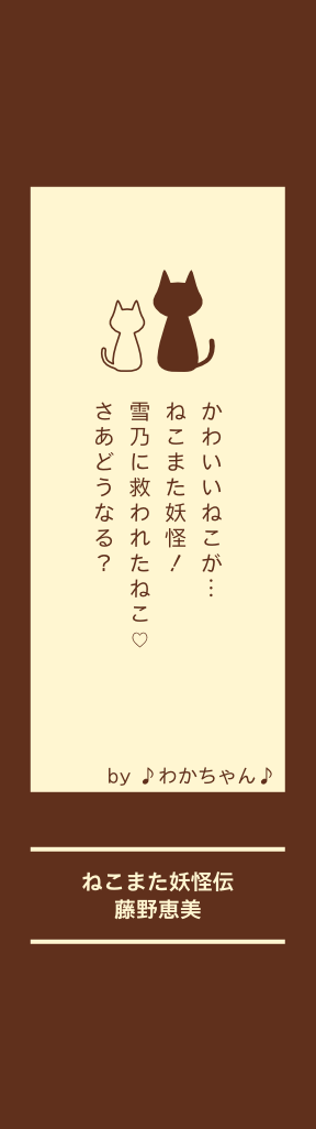 ミーというねこがねこ また妖怪!雪乃に救わ れた。ミーは、まなか ちゃんがさらわれたと 気づくと、救けに行き たがる!まなかちゃん は、公園でミーにやさ してくしてくれたから! あぶないと、みんなが 止めても行きたがる! そして、あぶない魔境 に行った!さあどうな る?